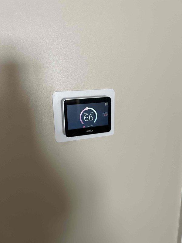 Completed diagnostic assessment of HVAC system and identified need for two replacement thermostats. Documented existing Lennox zone sensors (part #240164113-101) and took photographic documentation of current installation showing 66-degree temperature reading on digital display. Will return with required replacement thermostats to complete repair.