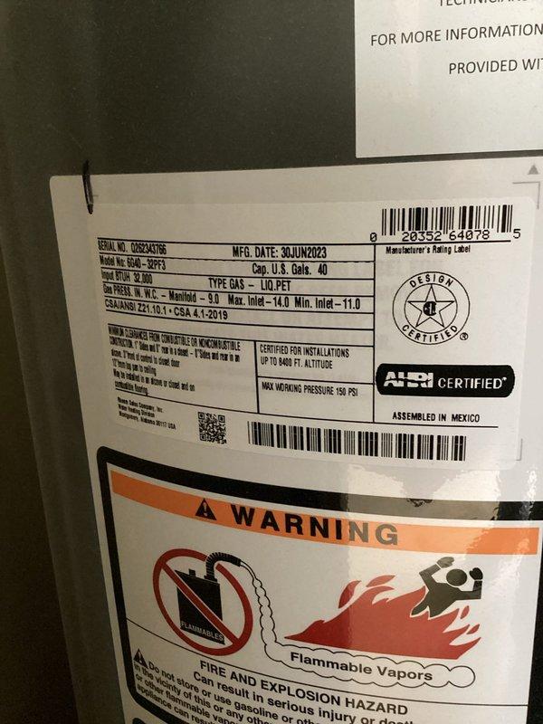 Responded to service call for 40-gallon gas water heater not heating. Upon arrival, confirmed that gas tank had been recently filled and verified no air present in supply lines. Inspected AO Smith 40-gallon residential gas water heater (Model BAM-SAF3, manufactured June 2023). Conducted diagnostic assessment to determine cause of no-heat condition on recently fueled unit.