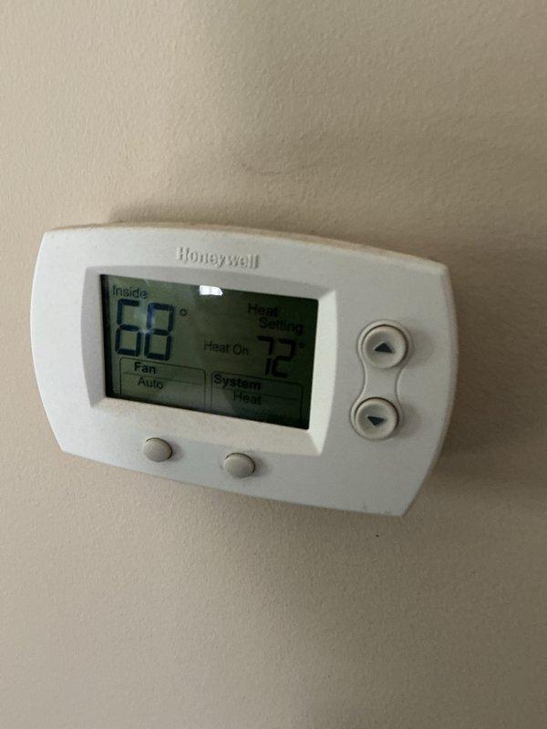 Completed monthly maintenance service on heating system. Inspected Honeywell digital thermostat which is functioning properly in heating mode (set at 72°F with current indoor temperature of 68°F). Replaced standard 20x20x1 air filter as included in CCH basic monthly maintenance package.