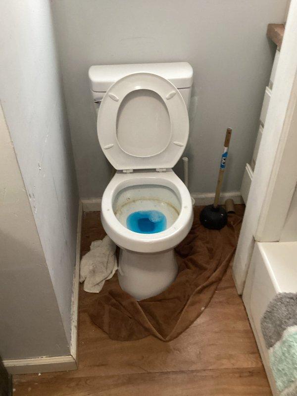 Successfully cleared clogged toilet by using manual plunger to remove blockage. Verified proper flushing and drainage function after service completion, with no leaks observed at base or connections.