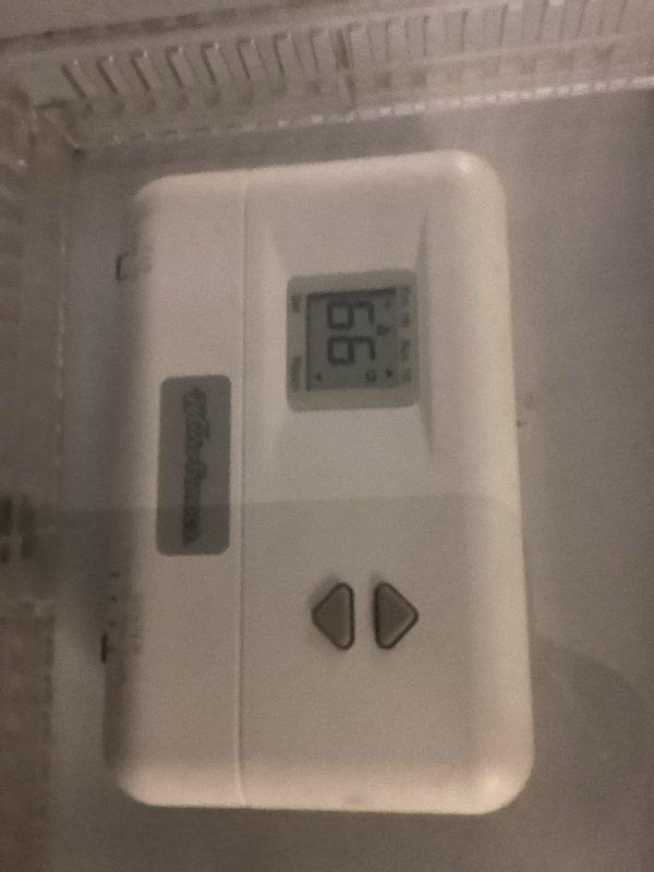 Completed installation of new heating system with Honeywell Home digital thermostat. Verified proper thermostat operation in heat mode with display showing correct temperature readings. System successfully powered up and functioning as designed.
