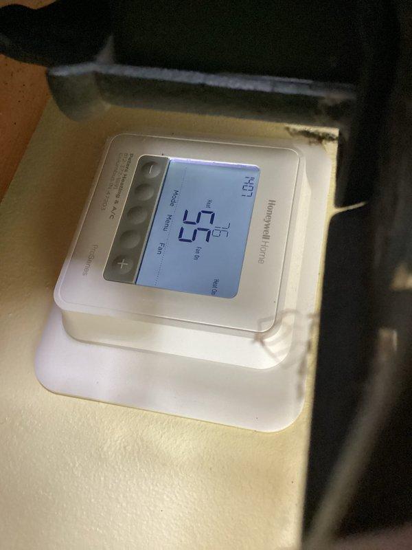 Performed scheduled basic monthly maintenance on the CCHP-Heating system. Inspected A.O. Smith ProMax water heater for proper operation and verified Honeywell Home ProSeries thermostat functionality, confirming heat mode operation with current temperature at 74°F against setpoint of 70°F. Filter replacement not included in this service.