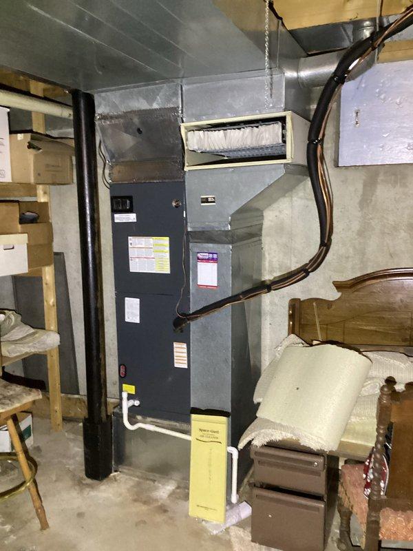 Performed Basic Monthly CCH maintenance on residential furnace system. Inspected and documented proper operation of the unit, including ventilation piping and condensate drain. Replaced 16x20x1 filter as included in service package and verified thermostat functionality, which was maintaining temperature at 70°F with setpoint of 76°F.