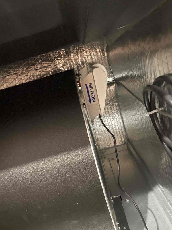 Successfully installed Clear Sky IAQ system with proper integration into the existing HVAC ductwork. Mounted airflow monitoring sensor to the main duct line and ensured proper wiring connections. System is fully operational with all ductwork connections properly sealed and insulated.