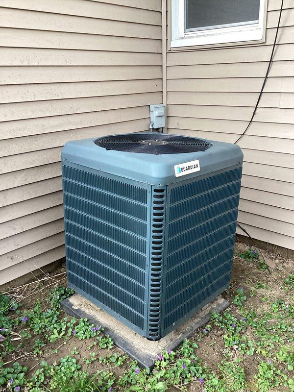 Diagnosed outdoor condensing unit with compressor starting issue on Guardian-brand air conditioning system. Scheduled follow-up service to install hard start kit and verify compressor operation, with contingency plan to contact technical support for warranty compressor approval if unit fails to start after hard start kit installation.