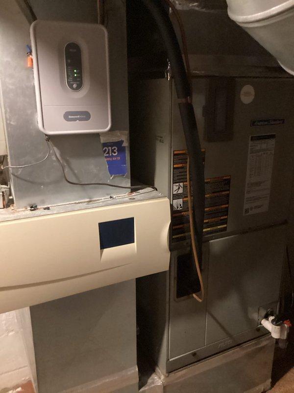 Completed routine heating maintenance on residential HVAC system. Performed comprehensive inspection of furnace components including blower assembly and squirrel cage fan. Verified blower wheel operation and inspected housing for proper airflow and structural integrity. Checked all accessible internal components for wear, dust accumulation, and operational efficiency. Inspected and tested Honeywell Home thermostat for proper functionality, verifying display operation and control settings for fan and system modes. Confirmed thermostat communication with heating system and proper temperature control response. All components found to be in satisfactory working condition with normal operational wear patterns observed.
